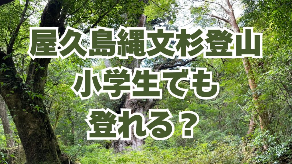 小学5年生の息子と一緒に、縄文杉を観に行きました。縄文杉に行くのは大人でも大変です。ちゃんと縄文杉に行けるのか、確認したことをまとめてみました。 縄文杉は鹿児島県屋久島に自生する推定樹齢2000年以上の巨大な屋久杉で、標高1300m付近に立っていま... -